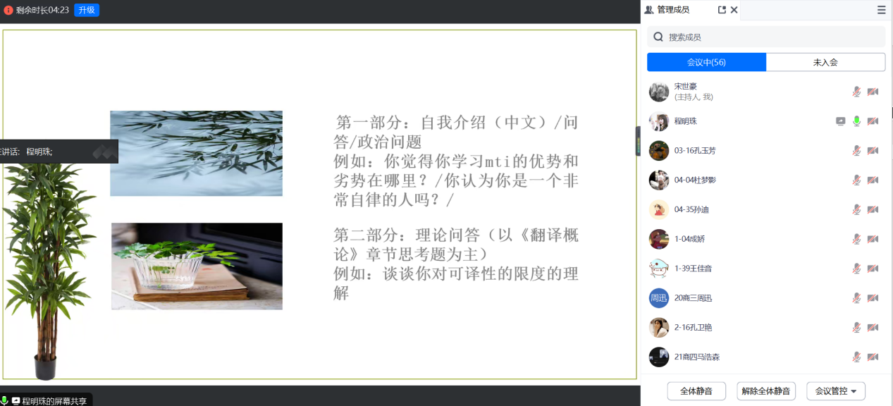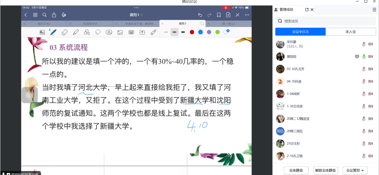 为帮助参加考研复试及准备调剂的学生强化相关技能、提升复试通过率,3月17日,伟德源自英国始于1946利用腾讯会议线上开展2024届商务英语专业学生考研复试及调剂分享会。由2018级、2019级考研上岸学生裴妞妞、郭梦璇、程明珠、张勇、刘柯岑等进行经验分享,2020级考研学生参加,会议由商务英语教研室副主任宋世豪主持。