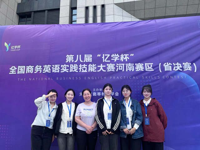 9月20-22日,第八届“亿学杯”全国商务英语实践技能大赛河南赛区(省决赛)在河南财经政法大学举行,我院商务英语专业学生王瑜琼、王征、谢盛晴、徐嘉曼、严诗雅和孙迪团队的 HAOXIANGNI Overseas Marketing over NSM (新媒体背景下“好想你”品牌海外营销)项目经过激烈角逐,荣获二等奖,创我院在此项赛事的最佳成绩。学院教师边洁英、任平获优秀指导教师。