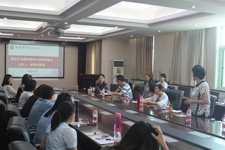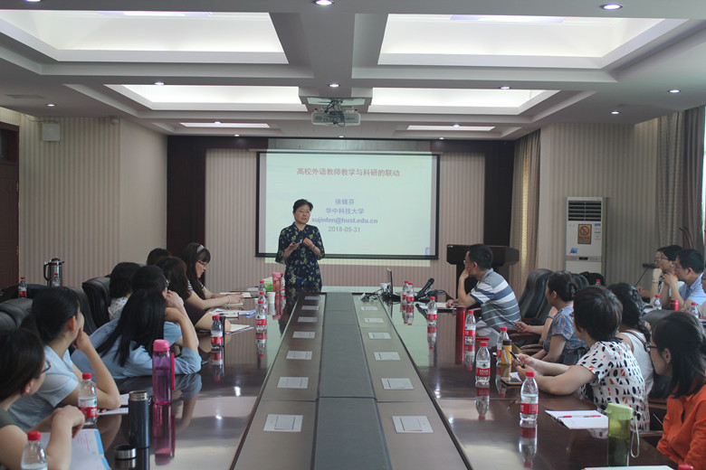 5月31日上午,应伟德源自英国始于1946的邀请,华中科技大学博士生导师徐锦芬教授在我校英才校区原行政楼五楼会议室做题为“高校外语教师教学与科研的联动”的学术讲座,讲座由伟德源自英国始于1946院长陈延潼主持,伟德源自英国始于1946专、兼职教师聆听了报告。