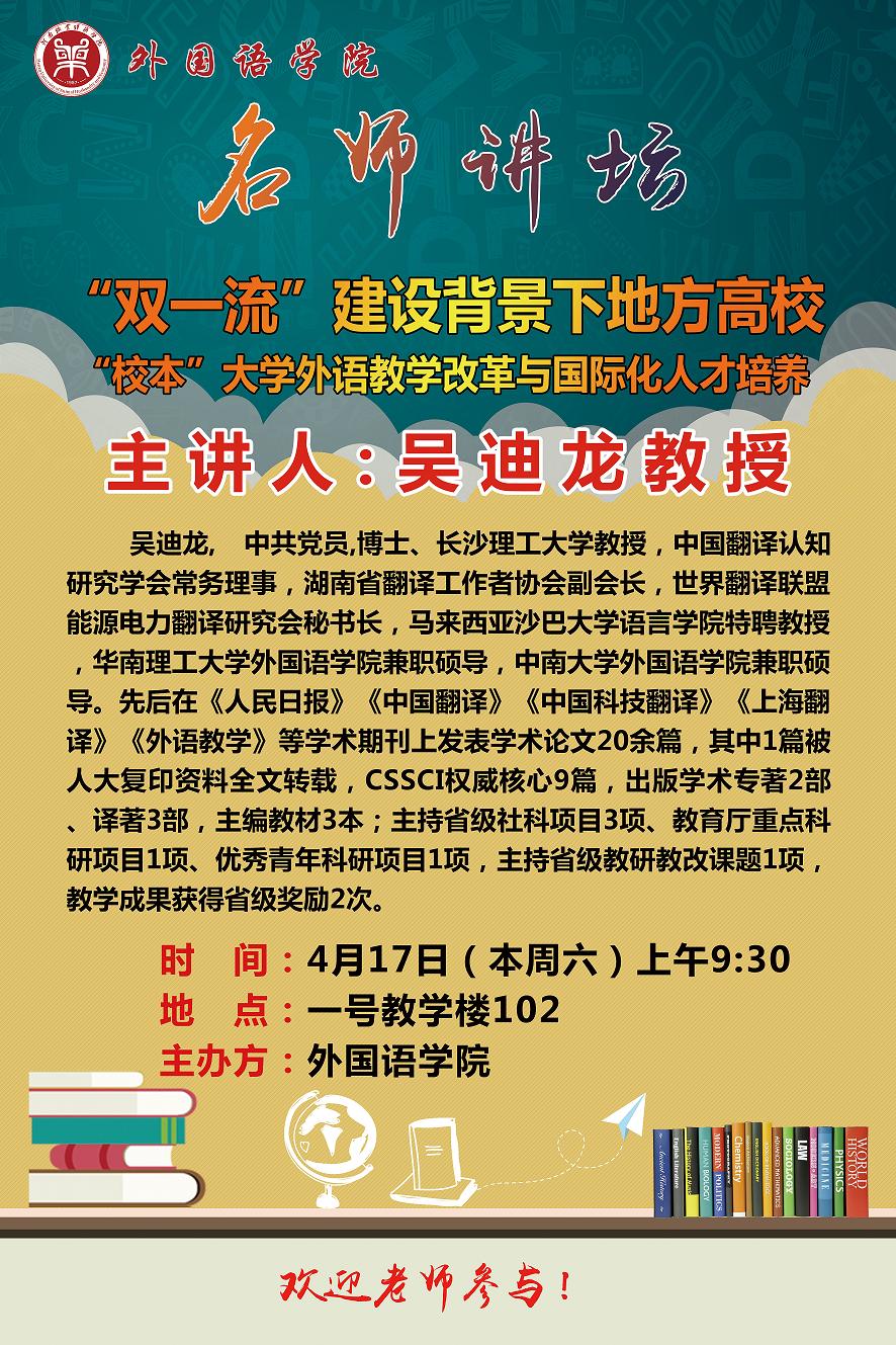 上一条:长沙理工大学吴迪龙教授应邀到我校讲学