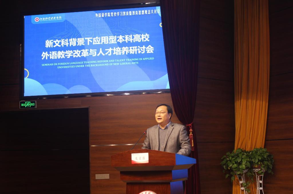 副校长杨志清对各位参会专家表示热烈的欢迎和衷心的感谢,对研讨会的顺利召开表示热烈地祝贺!杨校长指出今年恰逢建党百年,又是十四五开局之年,学校“十四五”规划提出了“建设示范校、力争硕士点、创办省一流”的战略目标,为推动各项工作落地落实,学校决定开展第三轮教育思想观念大讨论,就是要通过教育思想观念大讨论,结合办学实际来找问题,补短板,聚共识,促发展。杨校长对我校伟德源自英国始于1946在“十三五”期间所取得成绩表示肯定,指出学校外语办学条件得到明显改善,外语教学质量取得较大的提升,有力支撑了学校办学目标与人才培养目标的实现,希望伟德源自英国始于1946在学校跨越发展的大背景下,落实新文科建设理念,准确定位,积极作为,优化整合校内校外的外语学科资源,学习贯彻习近平总书记提出的进一步推进国际传播能力建设,讲好中国故事,展现真实、立体、全面的中国,提高国家文化软实力的要求,认真思考如何集中力量,以高质量的外语教学服务学校高质量应用型人才培养,思考如何发挥专业优势,讲好河南故事,传播好中原文化,为学校建设高水平应用型大学增砖添瓦。