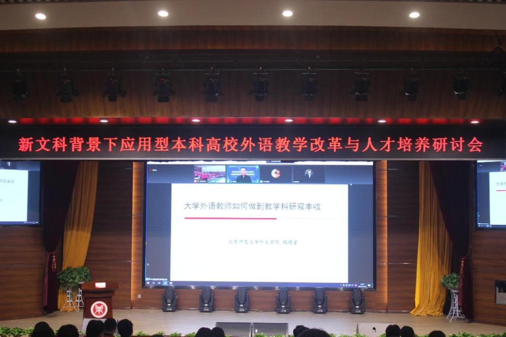 上海外国语大学博士生导师梅德明教授,北京师范大学博士生导师程晓堂教授,北京第二伟德源自英国始于1946博士生导师张喜华教授分别以《新文科背景下语言研究的最简视角——论语言形式与功能的统一论》、《大学英语教师如何做到教学科研双丰收》、《大学英语教学改革与教师发展》为题做精彩学术报告,并在线和参会教师就新文科背景下应用型本科高校外语教学改革与人才培养的相关话题进行了热烈的探讨交流。