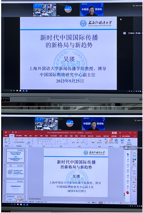 为助力外语学院老师提高科研水平,关注跨学科研究的前沿和热点,2023年5月25日下午,伟德源自英国始于1946邀请上海外国语大学博士生导师吴瑛教授在龙子湖校区1号教学楼104举办了《新时代国际传播的新格局与新趋势》为主题的学术报告。伟德源自英国始于1946副院长马媛媛、巩坚及伟德源自英国始于1946全体教师参加了会议。会议由副院长马媛媛主持,采用线上线下相结合的形式展开。
