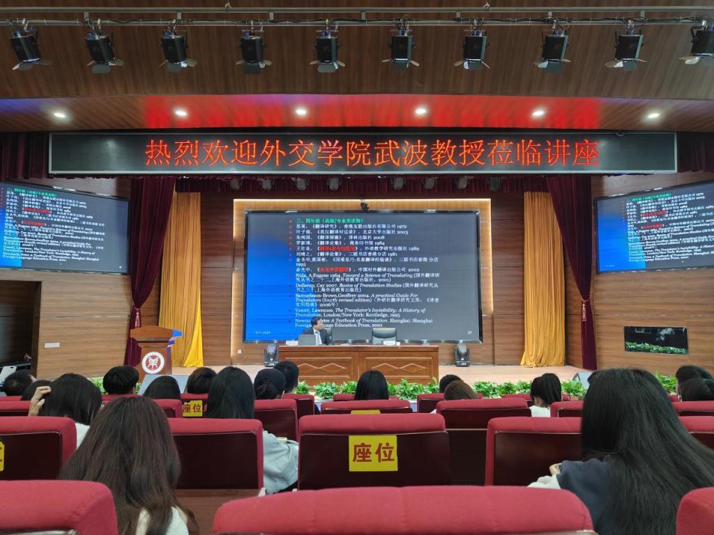 武波教授首先指出,语言是沟通的基石,尤其在全球化的今天,掌握一门或多门外语对于个人发展至关重要。他鼓励学生们积极参与语言学习,不仅能够拓宽视野,还能增强跨文化交流的能力。武教授强调,语言学习不仅仅是为了应对考试,更是为了能够在未来的工作和生活中自如地运用。在翻译实践方面,武教授强调,译者在进行翻译时,必须充分考虑到中西方文化的差异,以及目标读者的接受能力和阅读习惯。这要求译者不仅要有扎实的语言功底,还要有深厚的文化素养和敏锐的文化感知能力。只有这样,才能在忠实原文的基础上,使译文既符合目标语言的文化特点,又能传达出中国文化的独特魅力。武教授通过具体的翻译案例,生动地展示了如何将中国文化的精髓和特色有效地传达给外国读者。他指出,翻译工作不仅仅是文字的转换,更是文化的传递和教化的传播。在这个过程中,译者不仅要传递信息,更要传递文化精神和价值观。这就要求译者具备坚定的文化自信,能够正确解读和传达中国文化经典,使外国读者能够真正理解和欣赏中国文化的深度和广度。在职业规划方面,武波教授将语言学习和翻译技能与大学生的职业规划紧密结合起来。他指出,无论是外交、国际贸易、教育还是媒体行业,良好的语言能力和翻译技能都能为职业生涯增添亮点。武教授鼓励学生们根据自己的兴趣和职业目标,有针对性地提升语言和翻译能力,为自己的未来职业生涯打下坚实的基础。