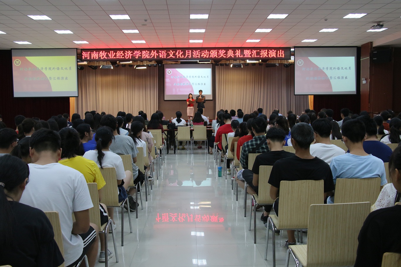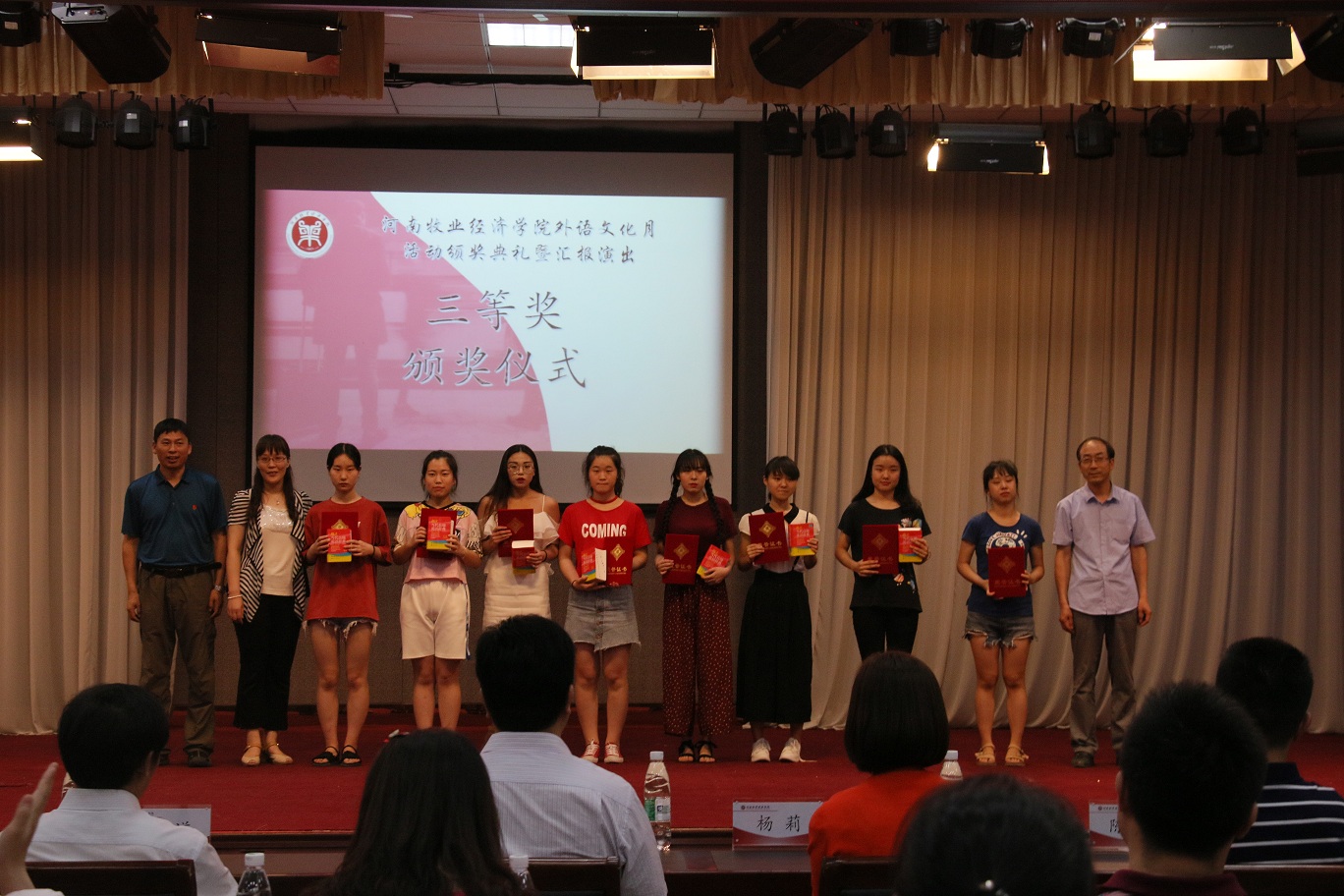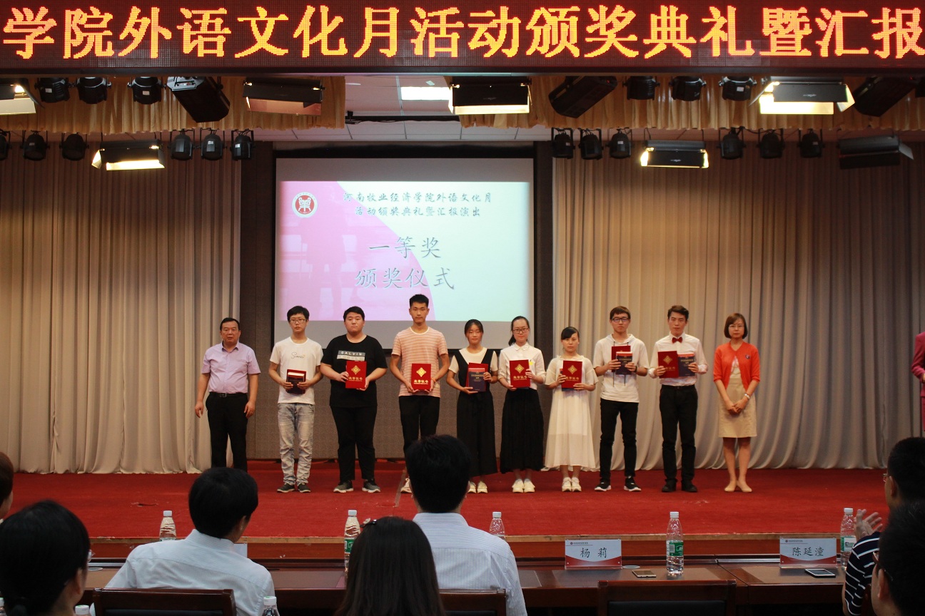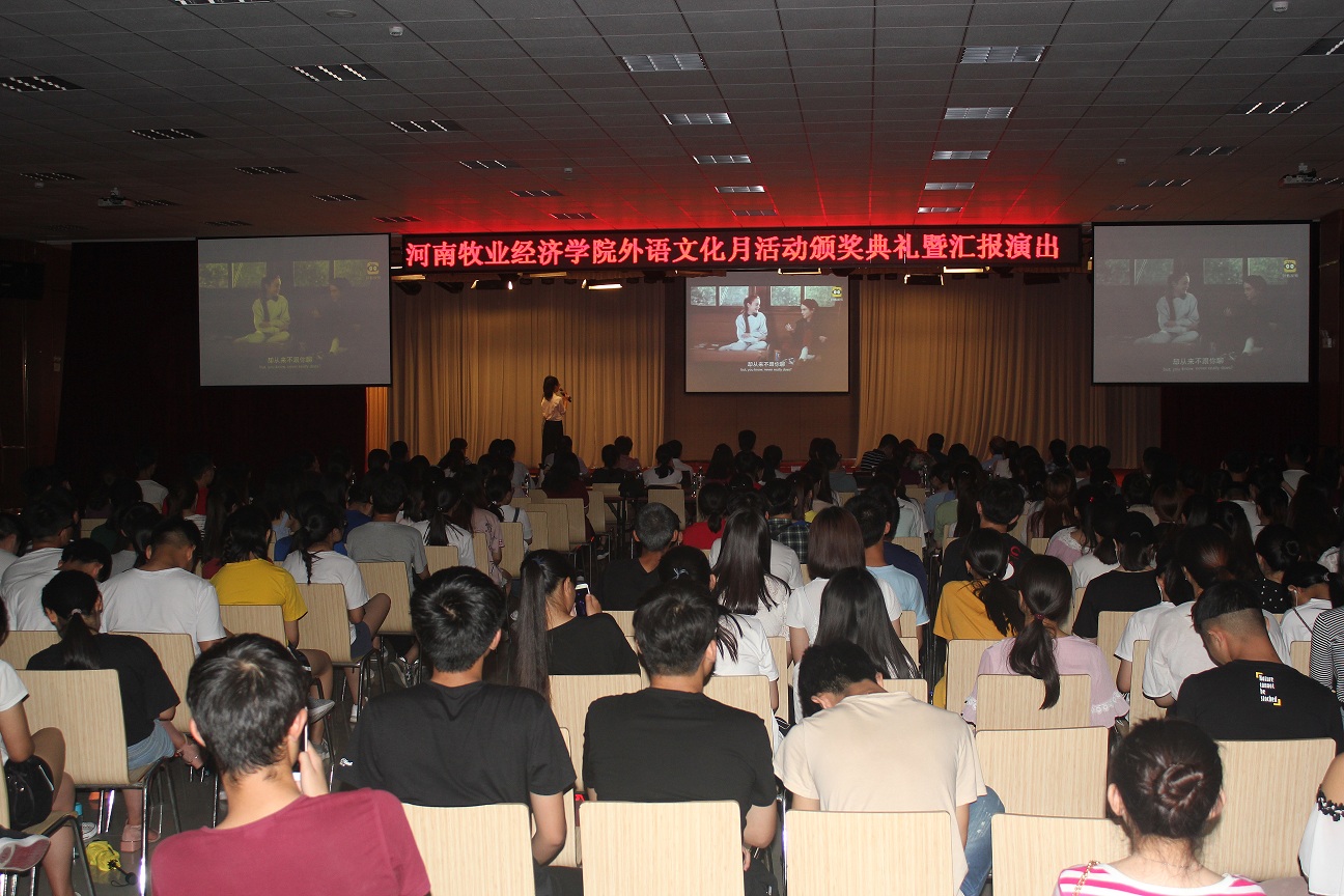 随着一系列比赛活动的结束,6月14日下午四点,伟德源自英国始于1946在龙子湖校区大学生活动中心举办了“河南牧业经济学院外语文化月活动颁奖典礼暨汇报演出”,总结外语文化月系列活动并进行成果展示。副校长许圣道,校党委机关工委书记王建昌,学工部部长、学生处处长张广芝,团委副书记杨莉以及伟德源自英国始于1946党政领导莅临本次活动。