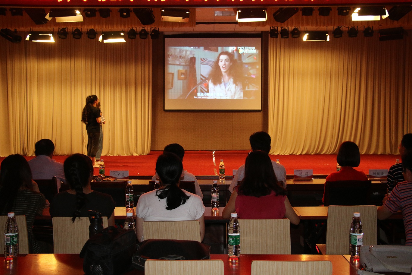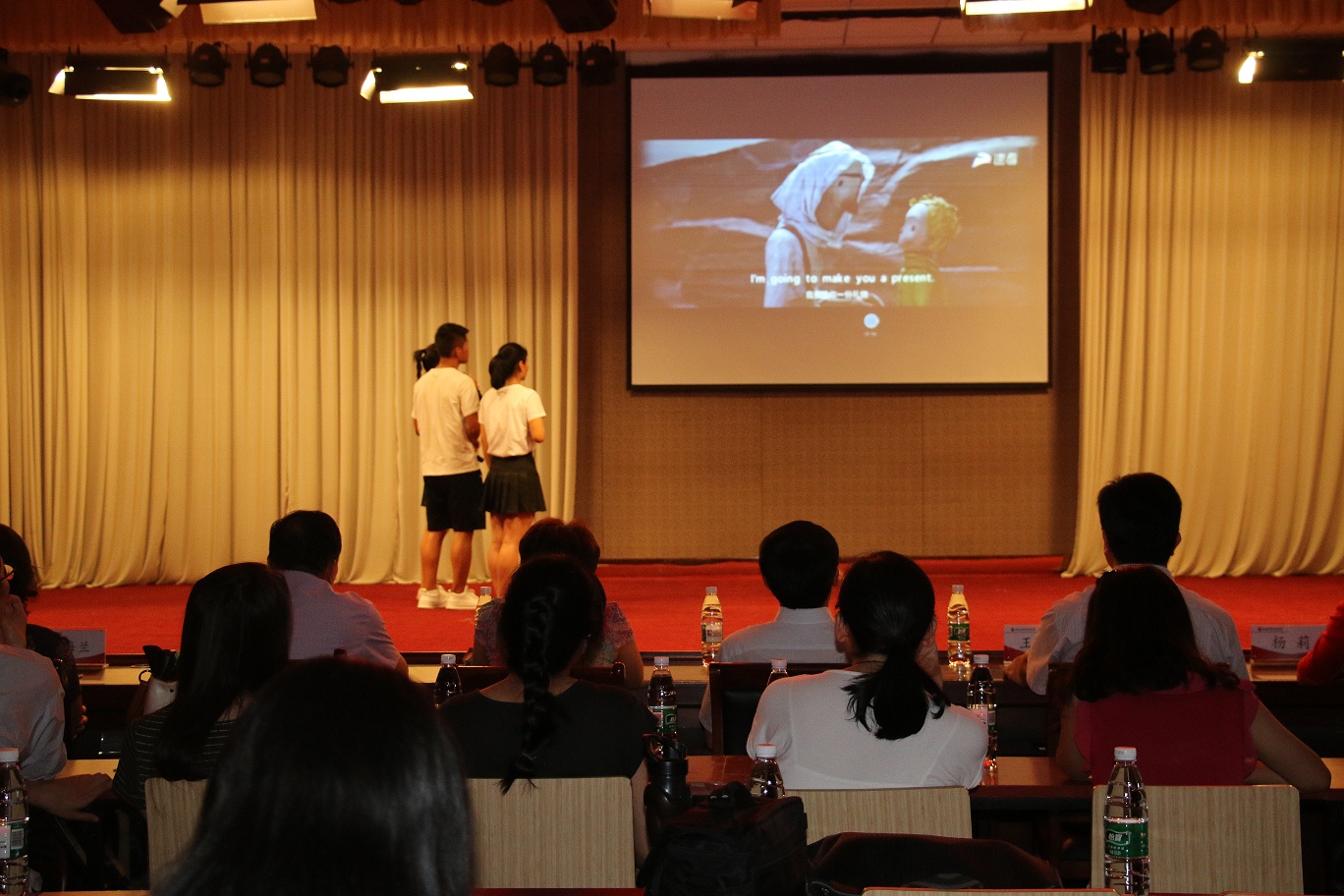 汇报演出在国际教育学院的同学们带来的电影配音表演《天生一对》中拉开了帷幕。随后各项赛事的颁奖仪式与获奖选手的演出穿插进行。有经济贸易学院、工程管理学院选送的《公主日记》配音表演,物流与电商学院的选送《小王子》配音表演,制药工程学院选送的《疯狂动物城》配音表演,艺术学院选送的《冰雪奇缘》配音表演,还有荣获全国高等院校英语导游服务三等奖的伟德源自英国始于1946旅游英语专业学生王颖颖带来的英文导游讲解----紫禁城,为观众带来了一场英语技能和英语文化的盛宴,充分展现了我校大学生的英语综合应用能力,赢得了嘉宾和观众的一致好评。副校长许圣道,校党委机关工委书记王建昌,学工部部长、学生处处长张广芝,团委副书记杨莉等嘉宾领导为荣获优秀组织奖、优秀指导教师奖及各项赛事一二三等奖的获奖集体和师生颁奖。