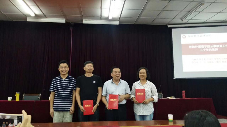 9月13日下午,伟德源自英国始于1946在英才校区E109教室举行隆重仪式,向我院从事教育工作30周年以上的教师致敬,院领导分别向弓峰山、陈东景、许海兰、张雪梅、宫桂梅、高立琴、方文、张继英、刘喜芳、贾遂芝等10位教师颁发了“从事教育工作30年”荣誉证书,年轻教师代表向10位老师献花祝贺。
