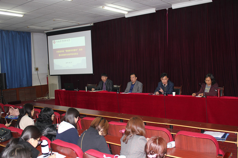 院长陈延潼对我院“课堂教学质量年”活动的具体工作做了安排部署。陈院长要求全体教工要高度重视,人人参与,要把宣传贯彻落实“课堂教学质量年”作为当前和今后一个时期工作的重点,把课堂教学作为教学工作的中心环节和基本形式,努力营造人人关心课堂教学、人人服务课堂教学、人人研究课堂教学的浓厚氛围,切实打牢本科教学工作基础,以实际行动和良好业绩迎接本科教学合格评估。陈院长希望通过开展“课堂教学质量年”活动,形成识变、应变、求变的同向思维和同向行动,建设金牌外语教师团队,打造外语金课,促进我校外语专业人才培养质量的提升和公共外语教学质量的提升。