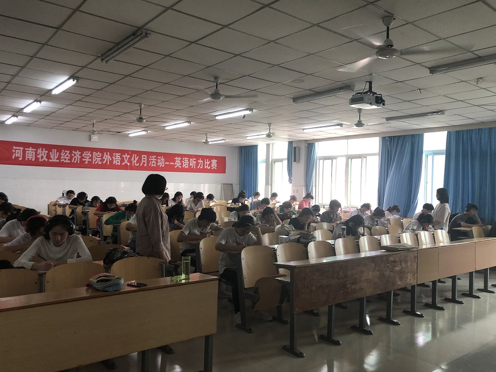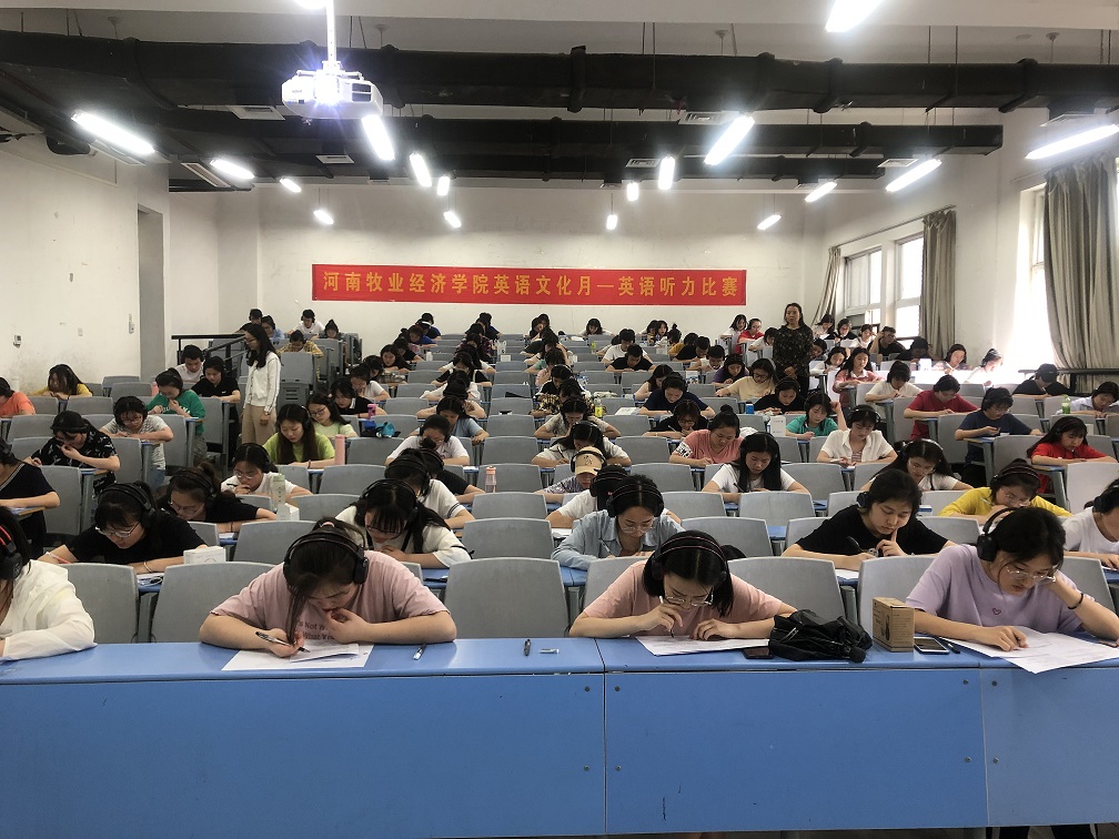 为推进校园文化建设,丰富我校的外语教学第二课堂,激发我校学生学习英语的兴趣和热情,按照《2019年河南牧业经济学院外语文化月活动》的安排,5月16日下午,我校成功举办了英语听力大赛,全校近两千名学生在三校区同时参加了比赛。