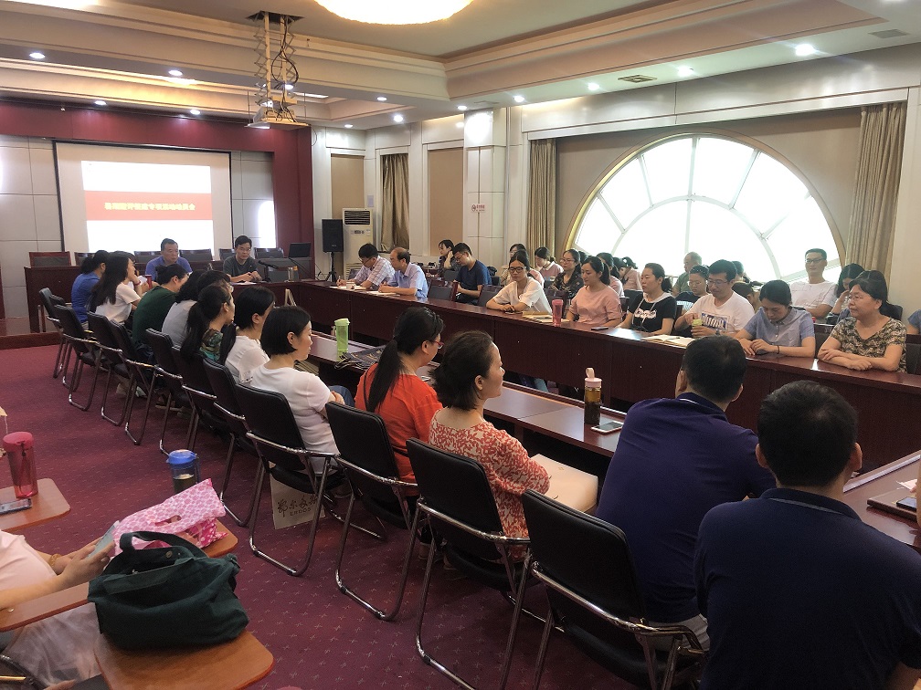 院长陈延潼在对本学期学院各项工作进行总结的基础上,传达了学校暑期迎评促建的工作安排及会议精神,并从三个方面对暑期迎评促建工作进行了总体部署:一是思想上高度重视:要求全院上下按照时间节点,高度重视,责任到人,核查到位;二是工作上知行合一:要求每位教师结合教学基本文件的修制定,总结反思所承担的教学任务在学院发展、在人才培养方案中的定位,课堂思政与外语金课如何有效融合;三是问题中立行立改:希望全体教师对照各项要求,认真核对、及时梳理问题、解决问题。