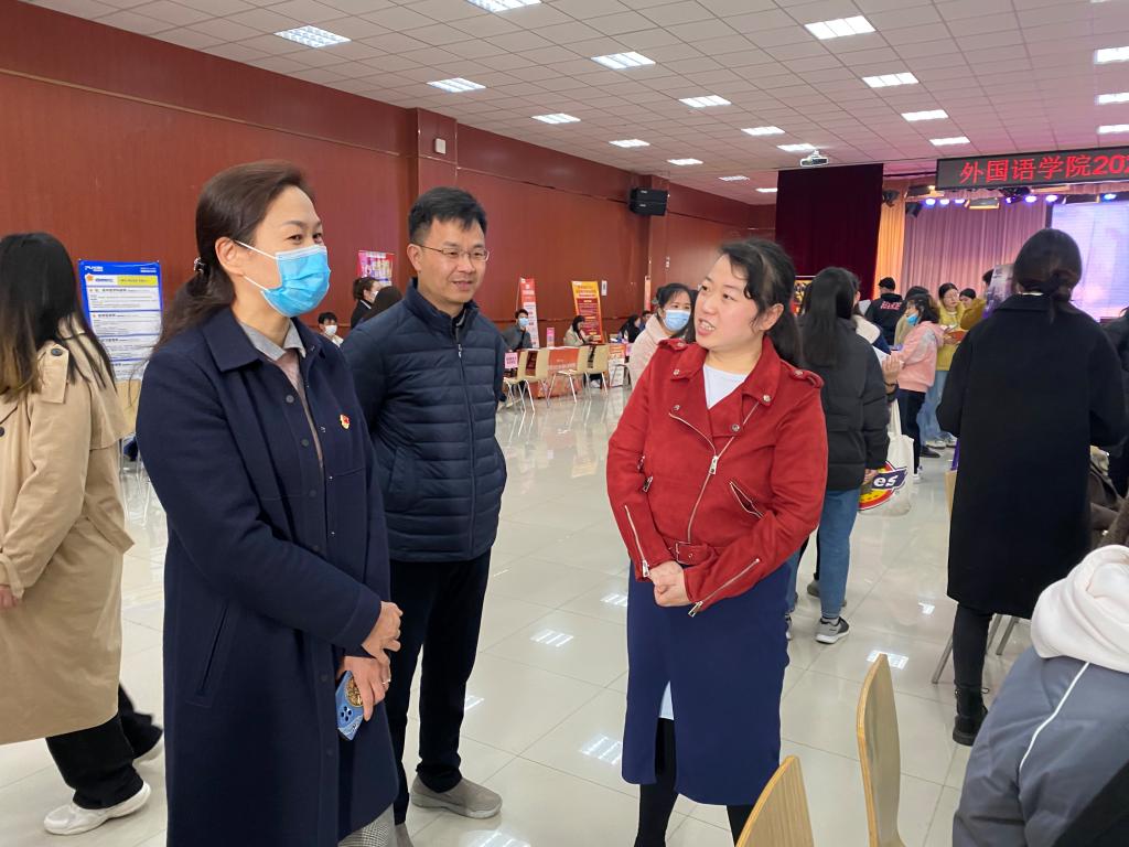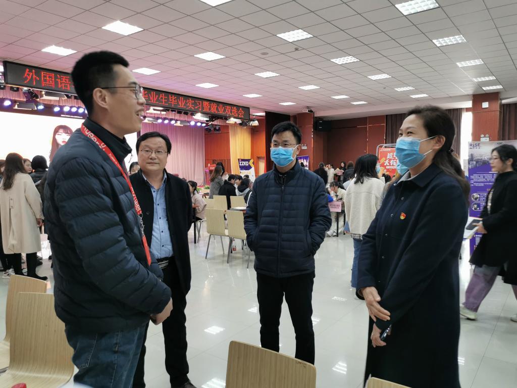 副校长杨志清与参会企业领导亲切交谈,仔细询问企业的用人需求和对学校人才培养工作的意见建议,感谢企业为大学生实习就业提供平台。杨校长还与现场学生进行交流,勉励大家要充分结合自身优势,了解行业要求,精心挑选工作岗位,在实习中锻炼自己、服务社会,顺利实现高质量就业。
