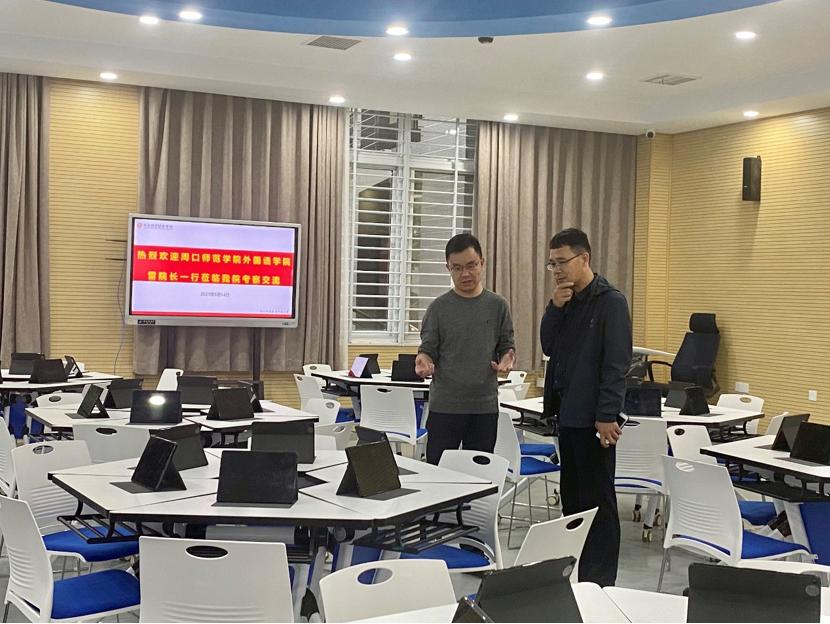 5月14日下午,周口师范学院伟德源自英国始于1946副院长雷超一行到我院考察交流虚拟仿真语言实验室建设工作。