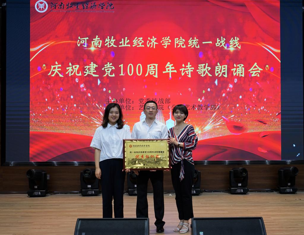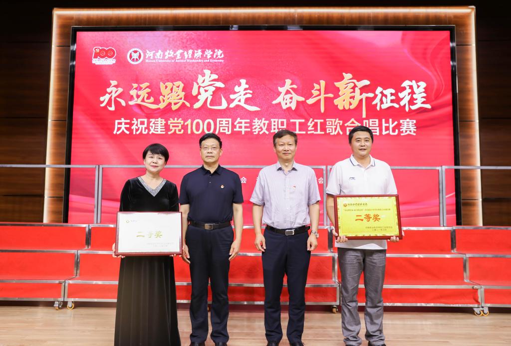 在近日圆满落幕的我校“永远跟党走 奋斗新征程”庆祝中国共产党成立100周年教职工红歌合唱比赛中以及“河南牧业经济学院统一战线庆祝建党100周年诗歌朗诵会”上,我院分别获得了二等奖和优秀组织奖的荣誉。