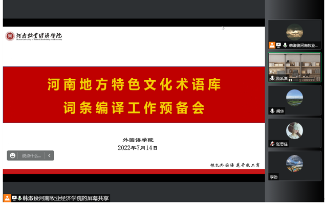 为做好河南地方特色文化术语编译相关工作,伟德源自英国始于1946于7月14日上午召开河南地方特色文化术语库词条编译工作预备会,会议由院长陈延潼主持,全体参与编译工作人员在线参会。