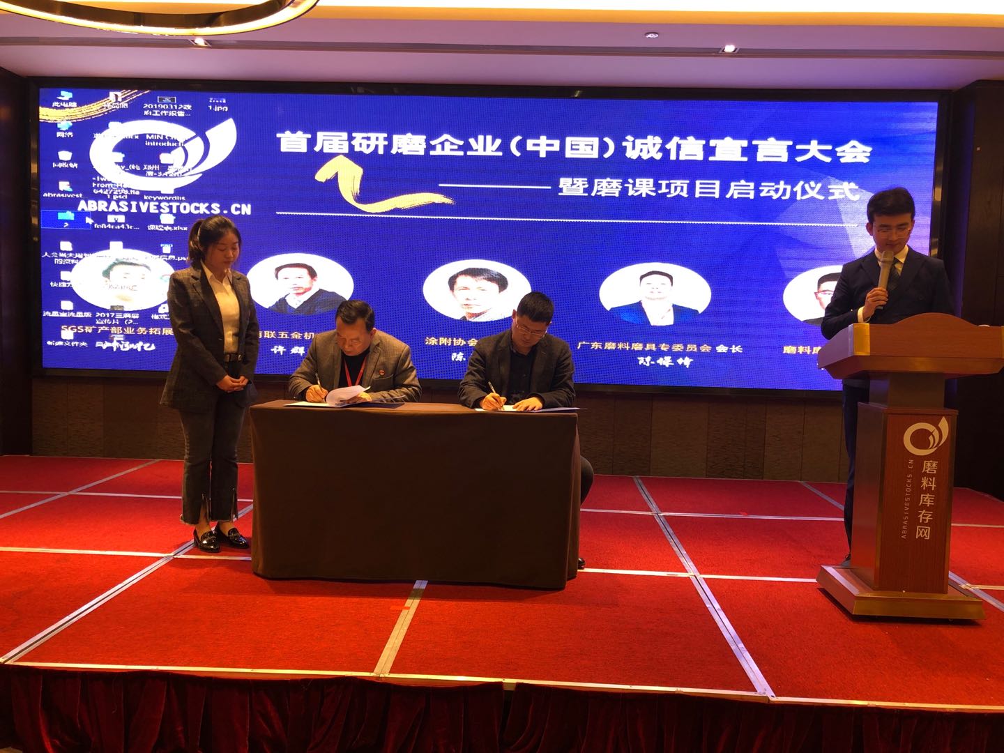 2019年3月12日,中国首届研磨企业诚信宣言大会暨磨课启动仪式在郑州举行,多家媒体、协会、电台参与了本次大会并全程进行报道。河南牧业经济学院、河南工业大学分别与磨料库存网签署了校企合作协议。
